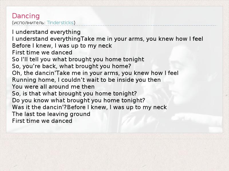 Oh, the dancin'Take me in your arms, you knew how I feel