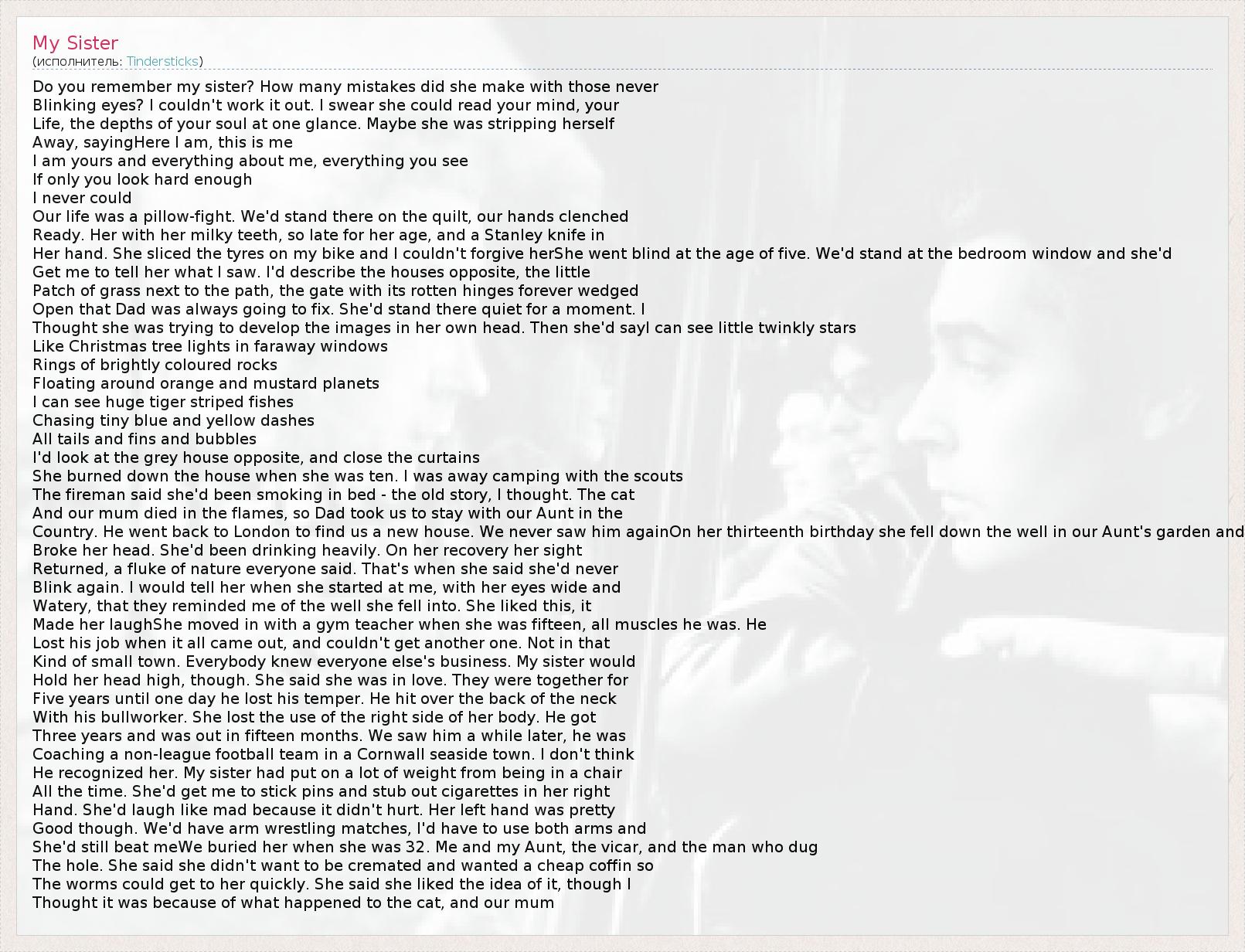 Это интересно:Проект образовался в 1992 году на обломках другой ноттингемской команды, "Asphalt Ribbons". Основу "Tindersticks" составили вокалист Стюарт Стэплс (р. 14 ноября 1965), клавишник Дэвид Боултер (р. 27 февраля 1965) и скрипач Дикон Хинчклифф (р. 9 июля 1967), а чуть позже к их компании присоединились гитарист Нил Фрэйзер (р. 22 ноября 1962), басист Марк Колвилл (р. 12 мая 1960) и ударник Эл Маколэй (р. 2 августа 1965).Tindersticks... продолжение