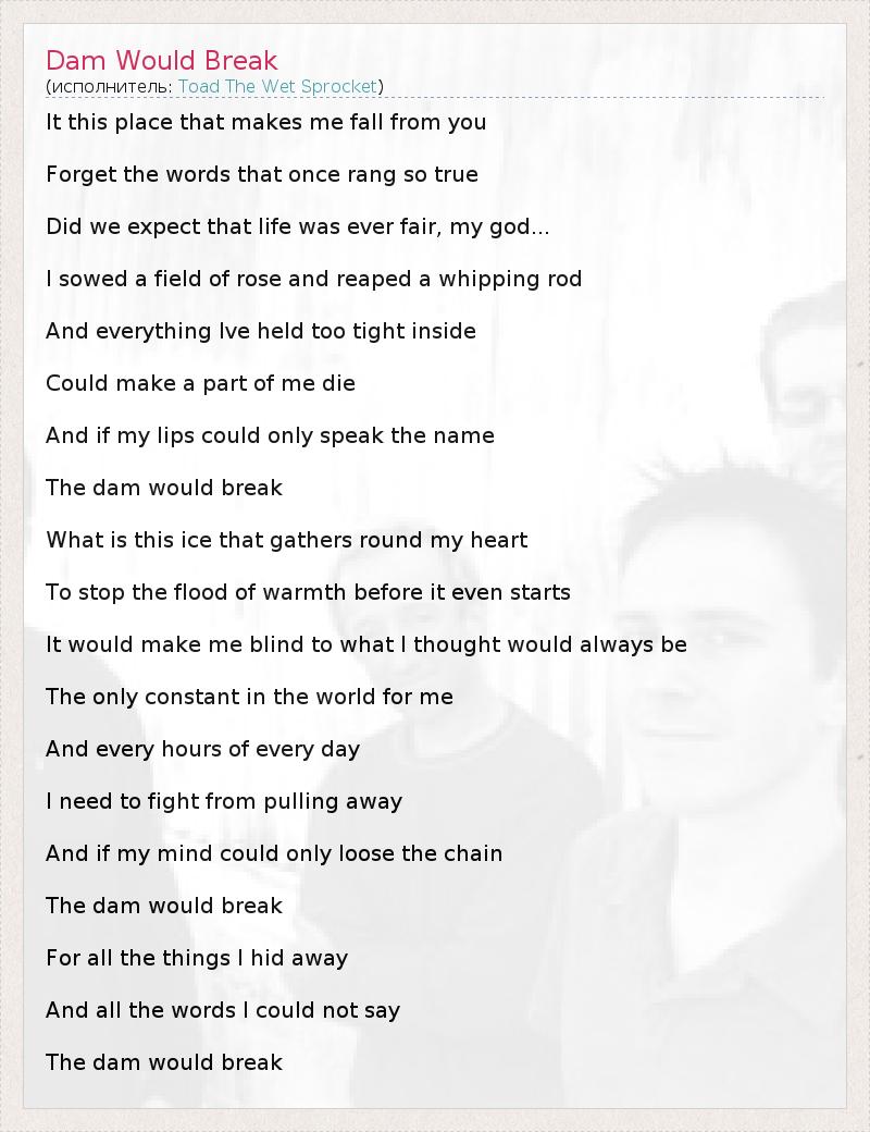 А как ты думаешь, о чем песня "Dam Would Break" ?