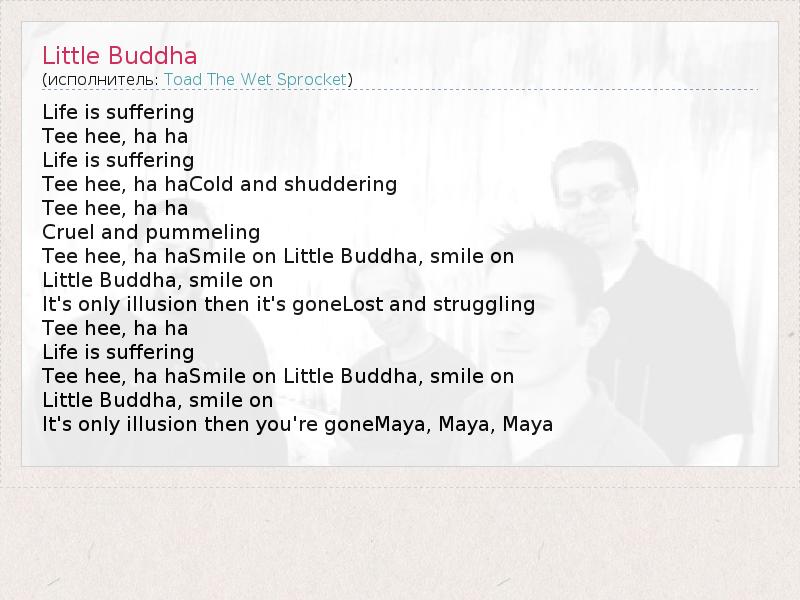 А как ты думаешь, о чем песня "Little Buddha" ?