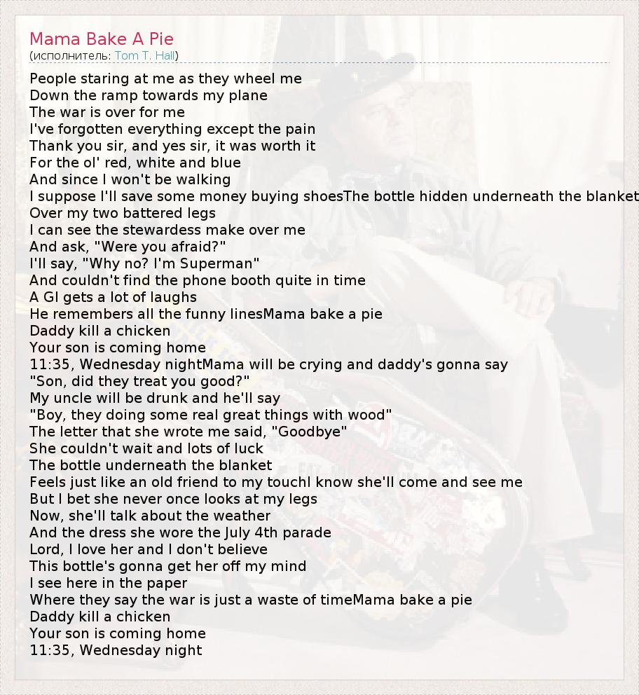 А как ты думаешь, о чем песня "Mama Bake A Pie" ?