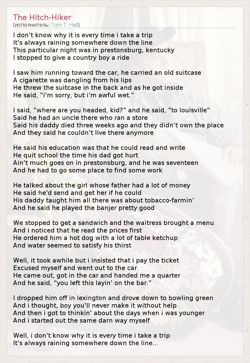 А как ты думаешь, о чем песня "The Hitch-Hiker" ?