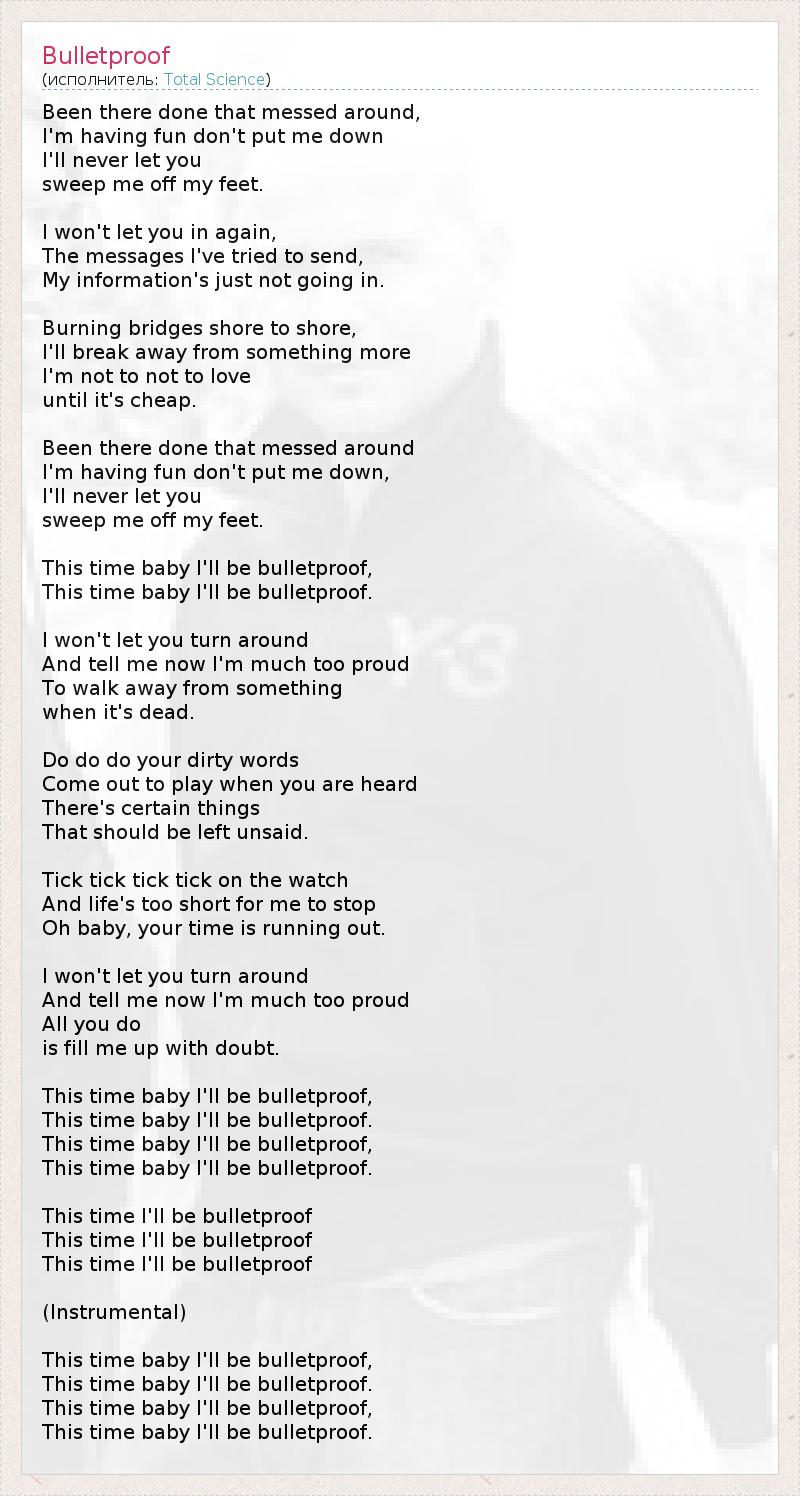 А как ты думаешь, о чем песня "Bulletproof" ?