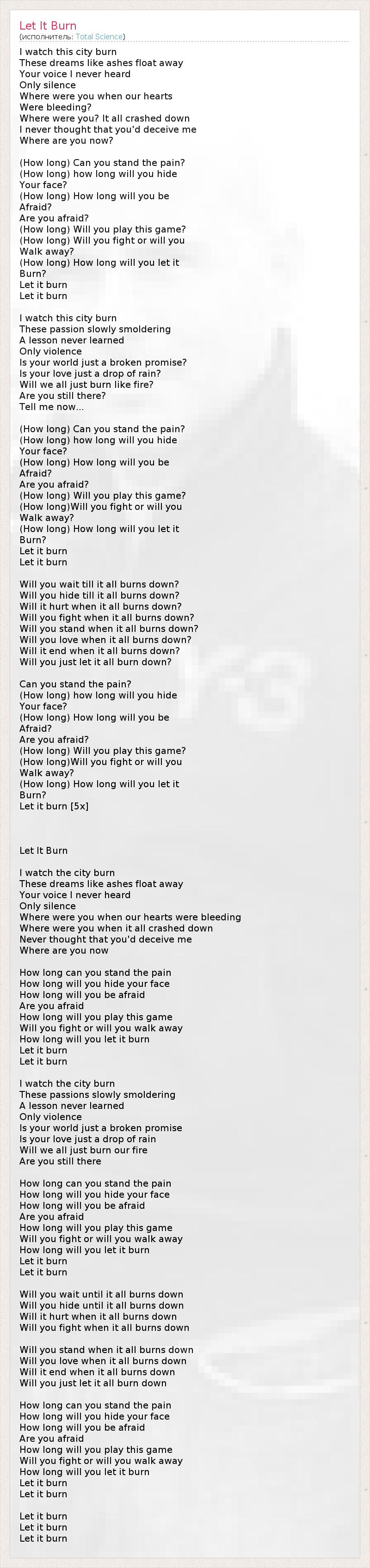 А как ты думаешь, о чем песня "Let It Burn" ?