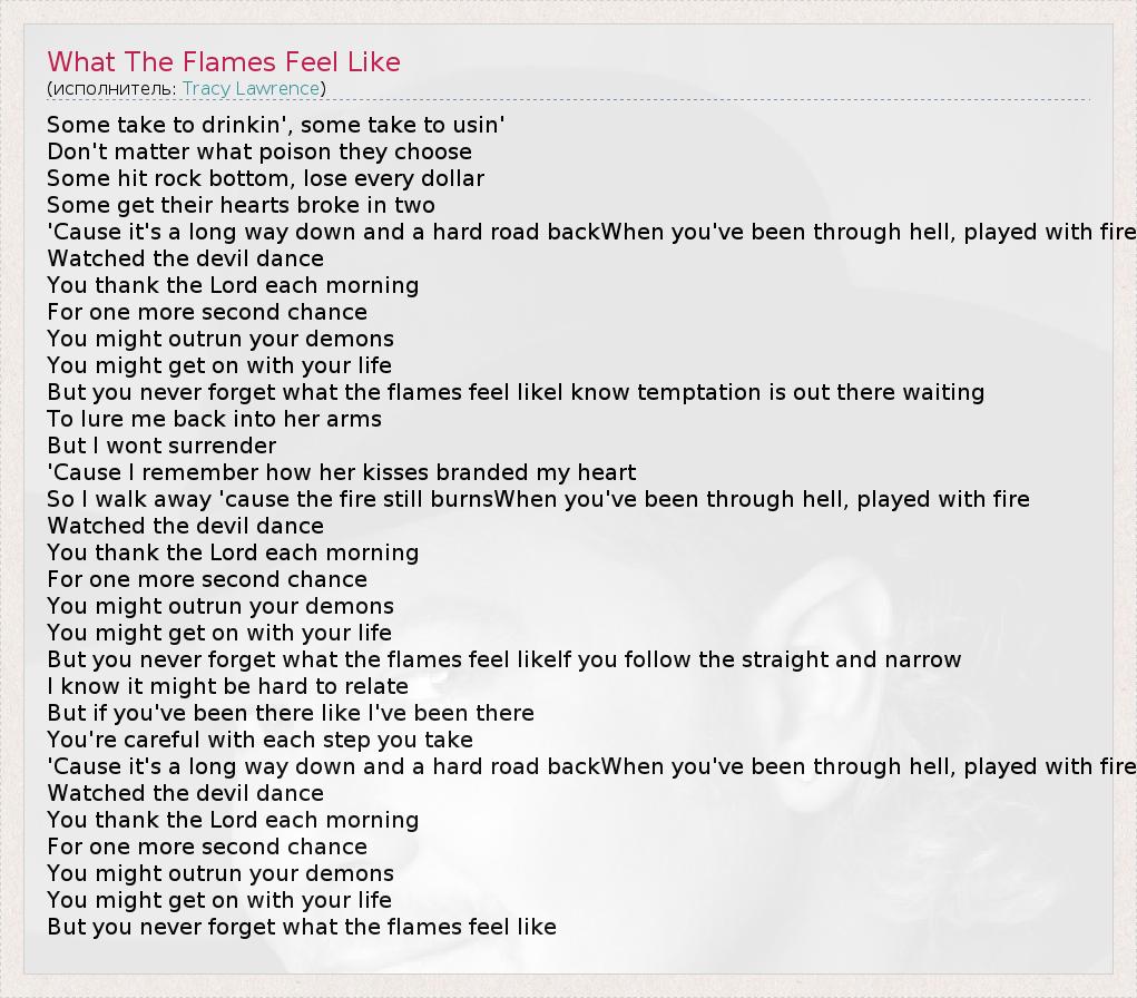 ГлавнаяИсполнителиTracy LawrenceWhat The Flames Feel Like