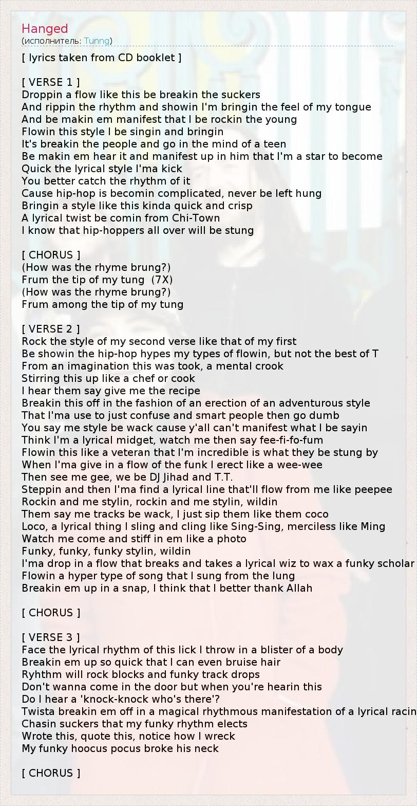 Face the lyrical rhythm of this lick I throw in a blister of a body