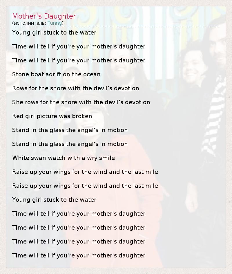 А как ты думаешь, о чем песня "Mother's Daughter" ?