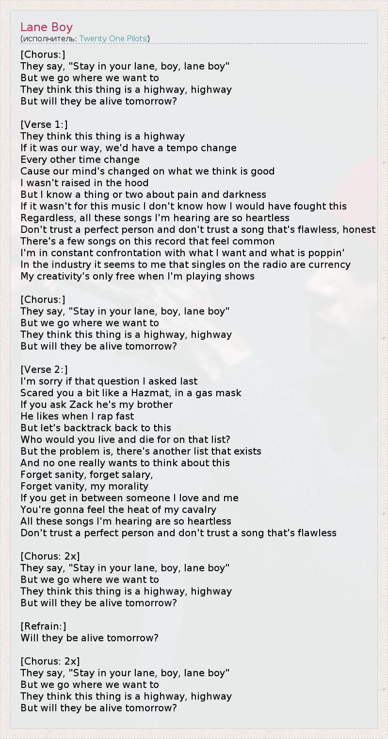 А как ты думаешь, о чем песня "Lane Boy" ?