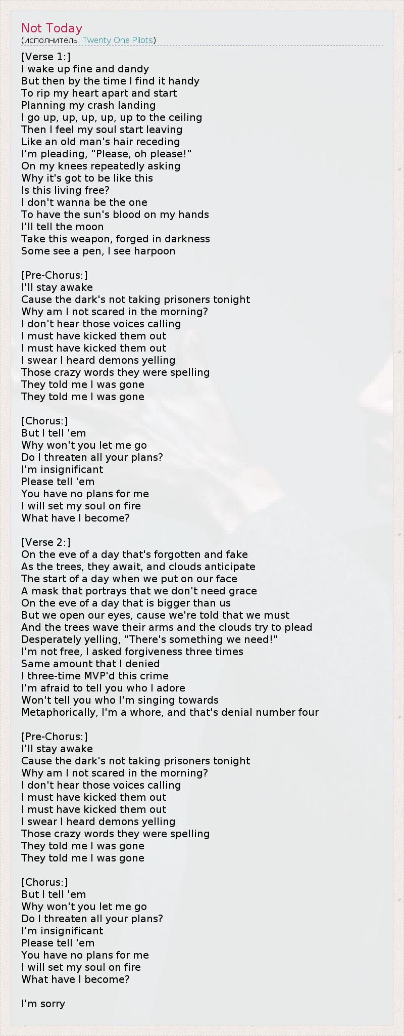 Это интересно:Дуэт из Коламбуса Twenty One Pilots играет довольно смелую и экспериментальную смесь инди и хип-хоп музыки, не забывая при этом использовать разнообразные электронные сэмплы. При создании своего саунда участники группы используют фортепиано, синтезаторы, барабаны, а иногда и укулеле, что ставит многих в тупик, при попытке отнести Twenty One Pilots к какому то определенному музыкальному жанру. Сами... продолжение