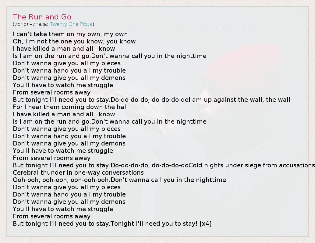 А как ты думаешь, о чем песня "The Run and Go" ?