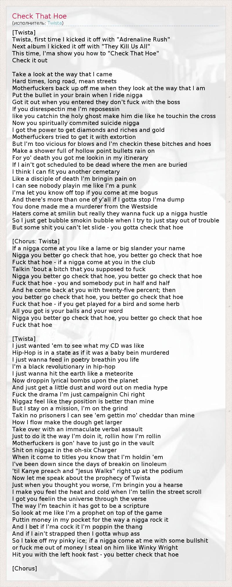 А как ты думаешь, о чем песня "Check That Hoe" ?
