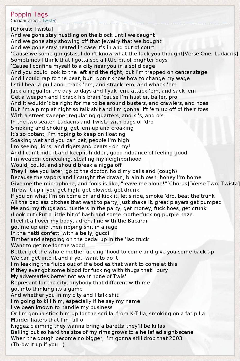 А как ты думаешь, о чем песня "Poppin Tags" ?