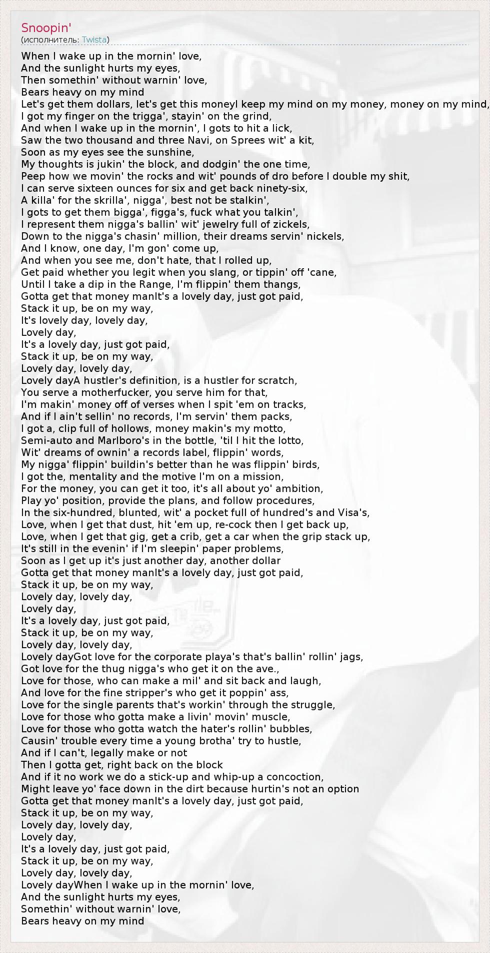 А как ты думаешь, о чем песня "Snoopin'" ?
