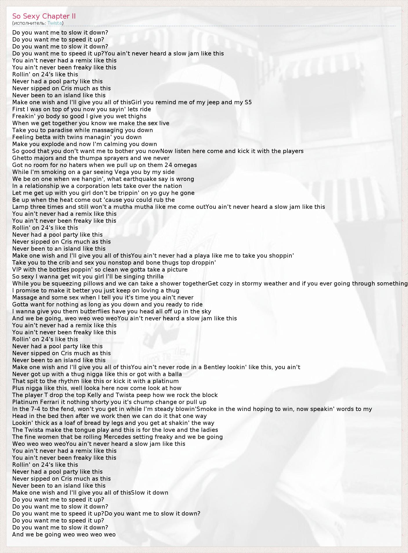 А как ты думаешь, о чем песня "So Sexy Chapter II" ?