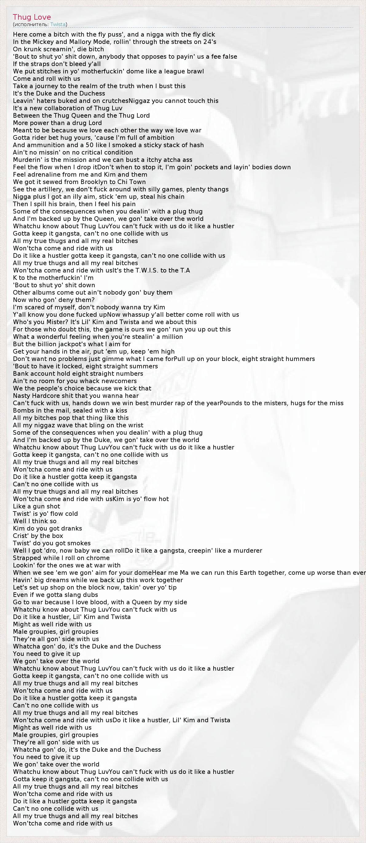 Whatchu know about Thug LuvYou can't fuck with us do it like a hustler