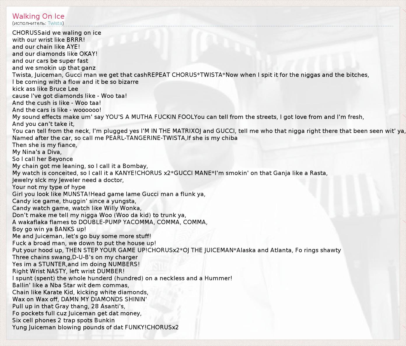 Twista, Juiceman, Gucci man we get that cashREPEAT CHORUS*TWISTA*Now when I spit it for the niggas and the bitches,