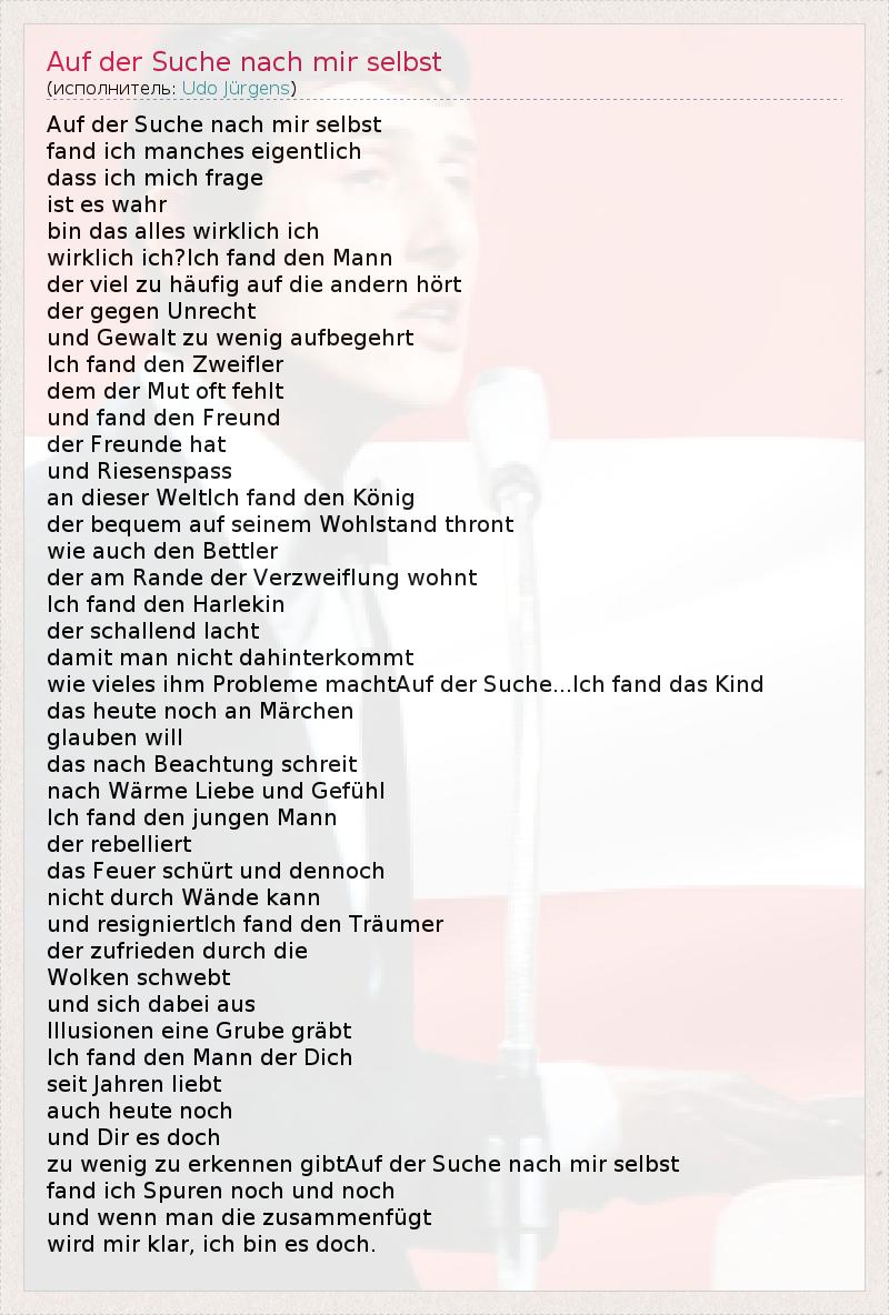 А как ты думаешь, о чем песня "Auf der Suche nach mir selbst" ?