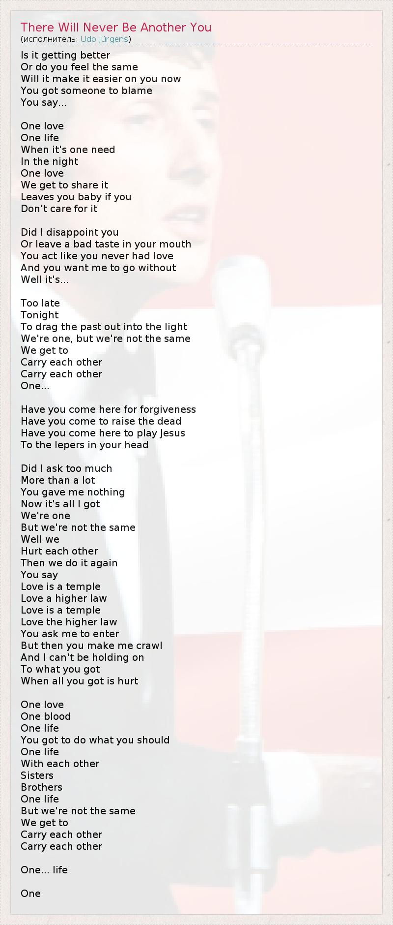 ГлавнаяИсполнителиUdo JürgensThere Will Never Be Another You