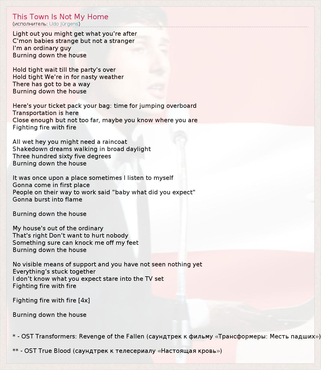А как ты думаешь, о чем песня "This Town Is Not My Home" ?