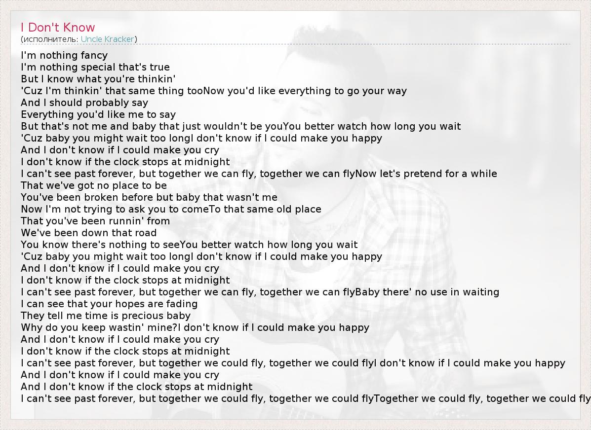 А как ты думаешь, о чем песня "I Don't Know" ?