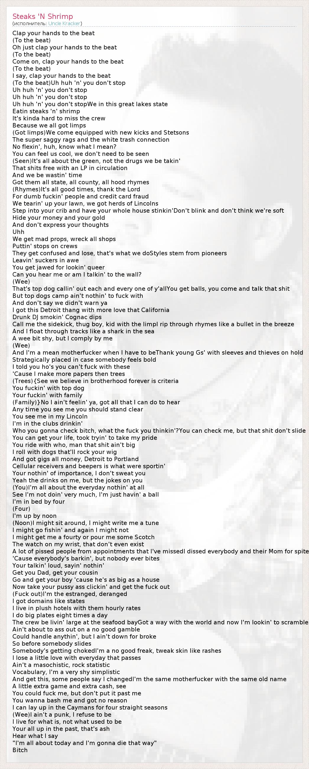 А как ты думаешь, о чем песня "Steaks 'N Shrimp" ?