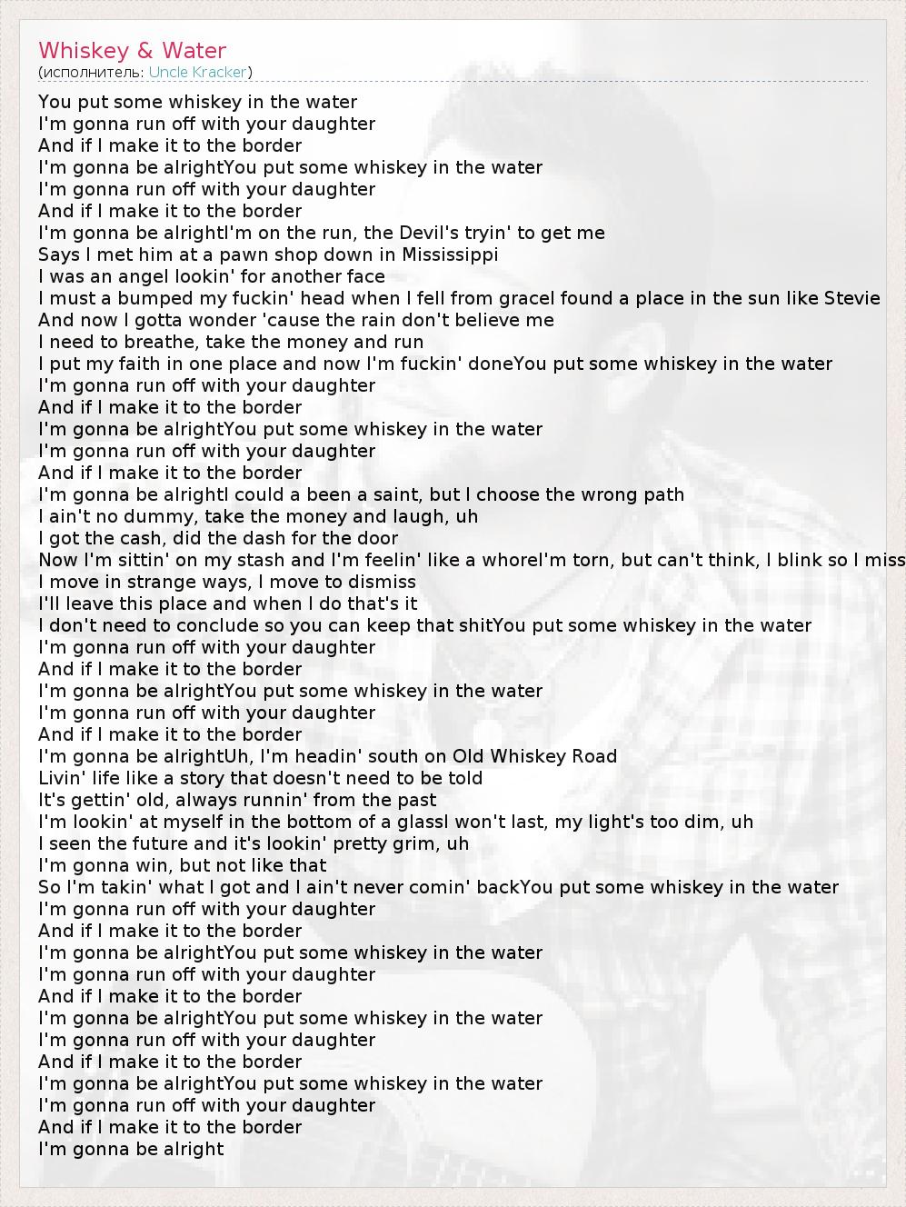 А как ты думаешь, о чем песня "Whiskey & Water" ?