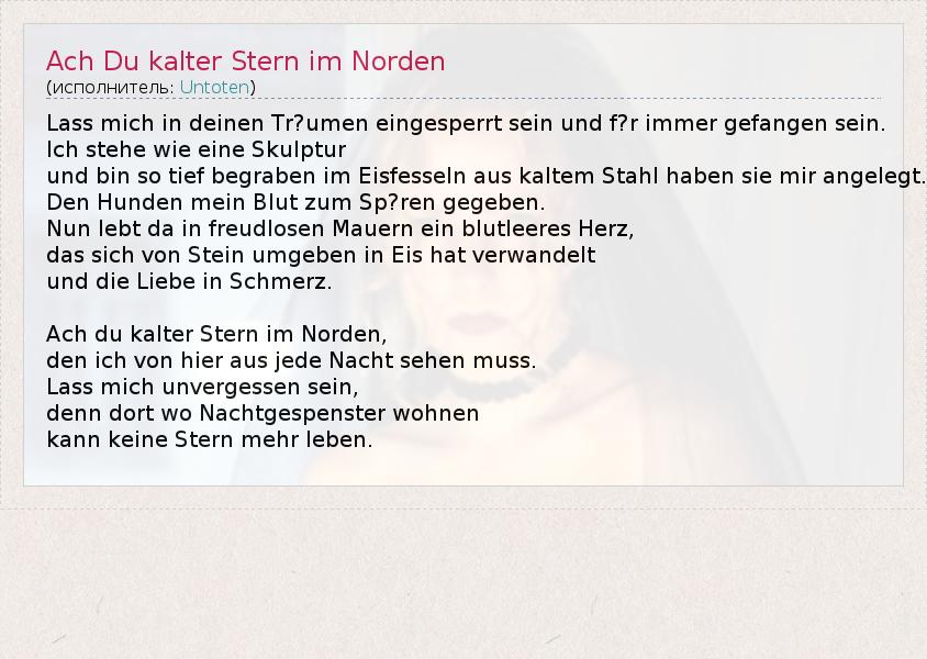 ГлавнаяИсполнителиUntotenAch Du kalter Stern im Norden
