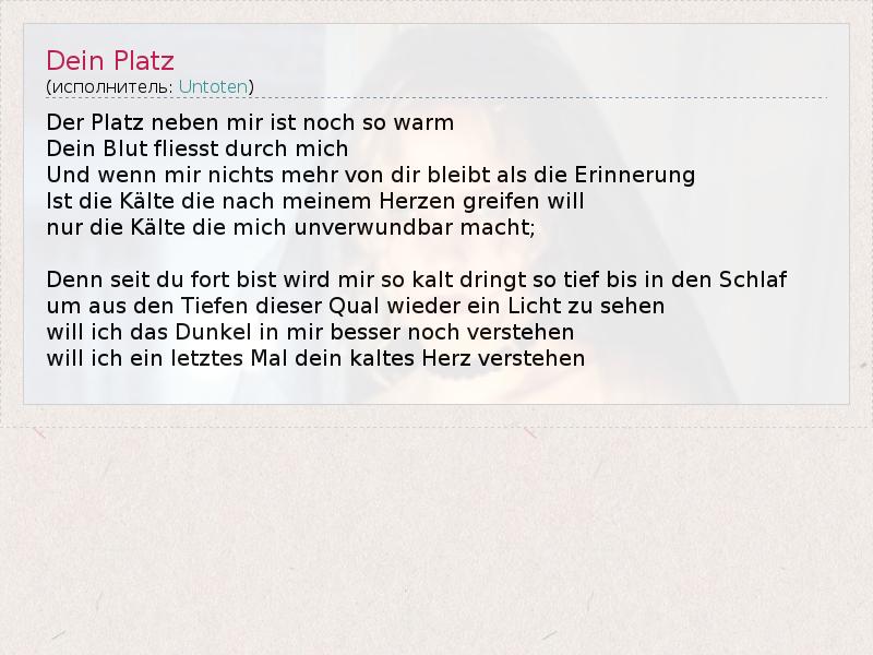 А как ты думаешь, о чем песня "Dein Platz" ?