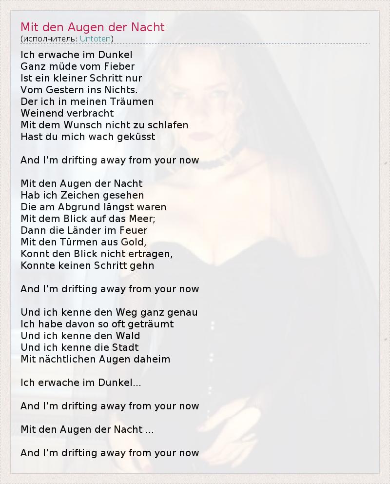 А как ты думаешь, о чем песня "Mit den Augen der Nacht" ?