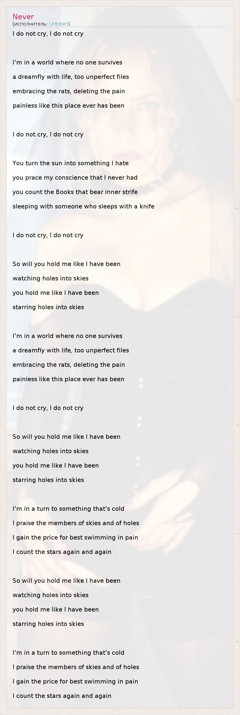 А как ты думаешь, о чем песня "Never" ?