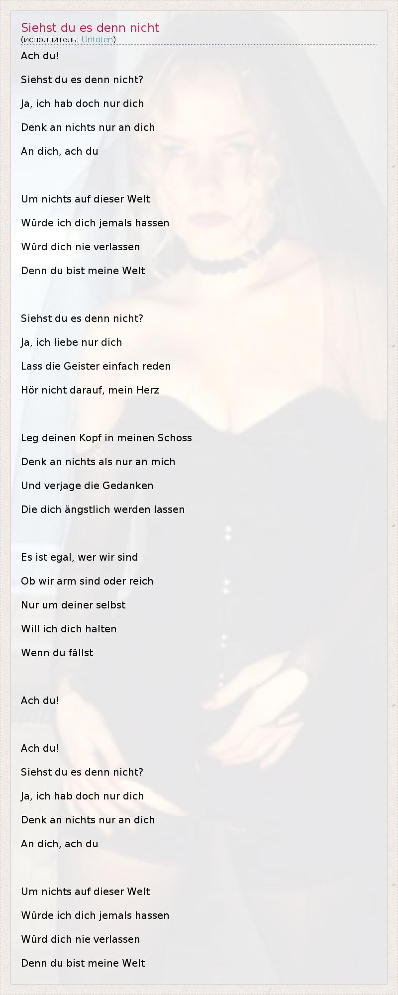 А как ты думаешь, о чем песня "Siehst du es denn nicht" ?