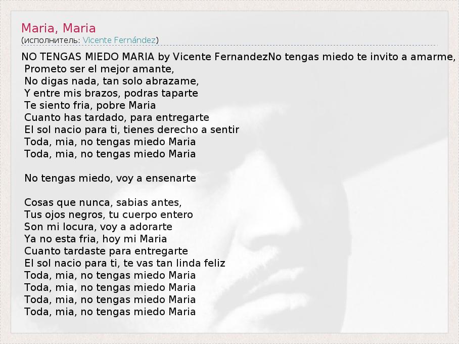 NO TENGAS MIEDO MARIA by Vicente FernandezNo tengas miedo te invito a amarme,