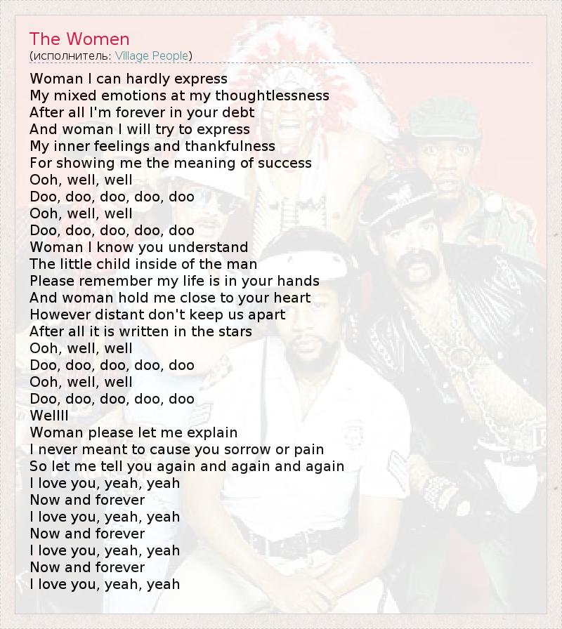 Это интересно:Village People — американская диско-группа, образованая в 1977 году французским композитором Жаком Морали и наиболее известная по своим хитам Macho Man, Y.M.C.A., Go West, In the Navy. Коллектив группы также очень запоминается своими сценическими костюмами, среди которых полицейский (Виктор Уиллис), индеец (Филип Роуз), ковбой (Рэнди Джонс), строительный рабочий (Дэвид Ходо), байкер (Гленн Хьюз) и морской пехотинец... продолжение