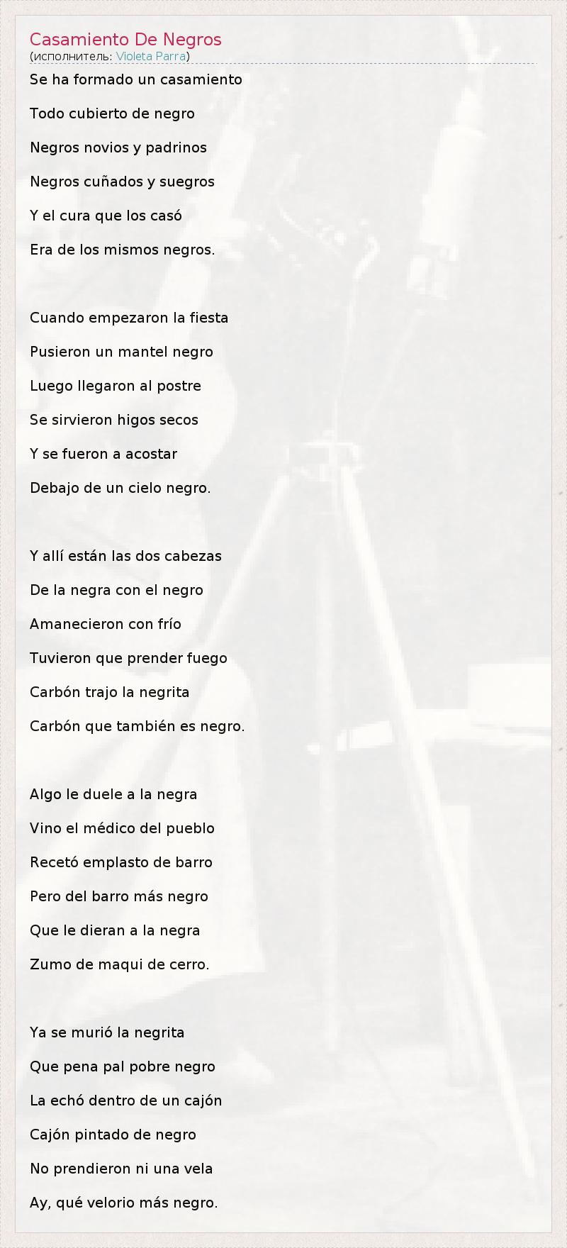 А как ты думаешь, о чем песня "Casamiento De Negros" ?