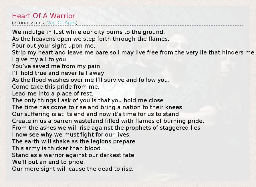 А как ты думаешь, о чем песня "Heart Of A Warrior" ?