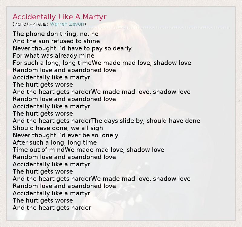 ГлавнаяИсполнителиWarren ZevonAccidentally Like A Martyr