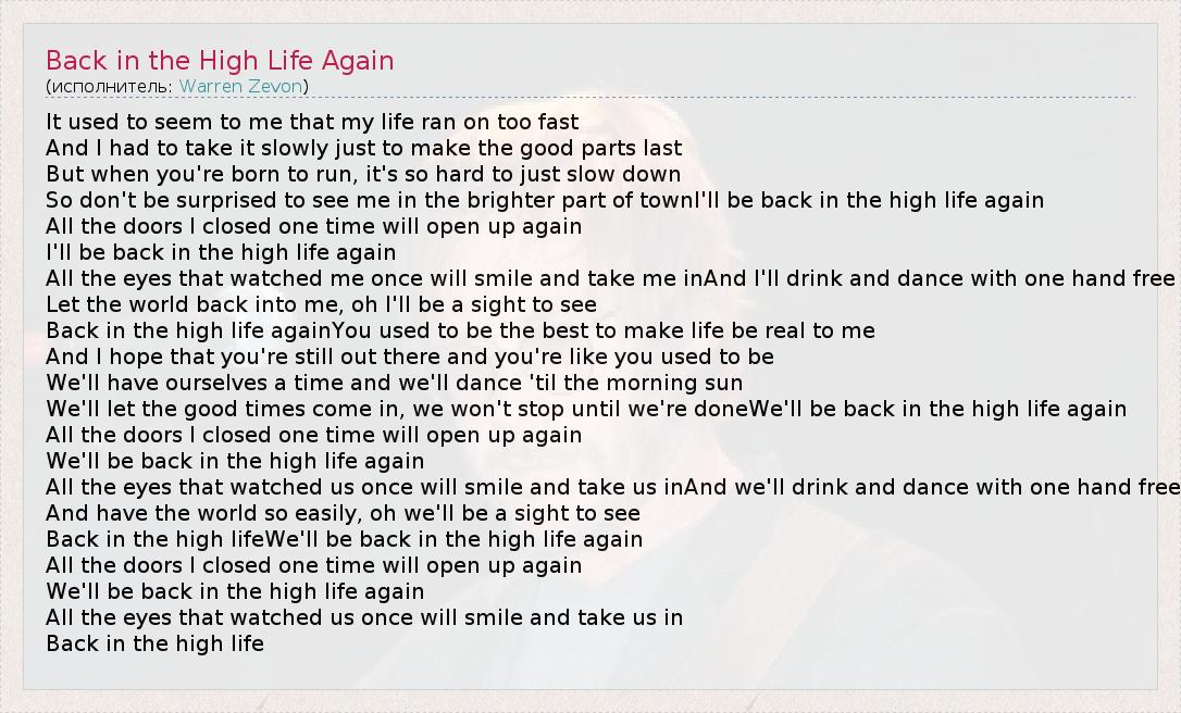 А как ты думаешь, о чем песня "Back in the High Life Again" ?