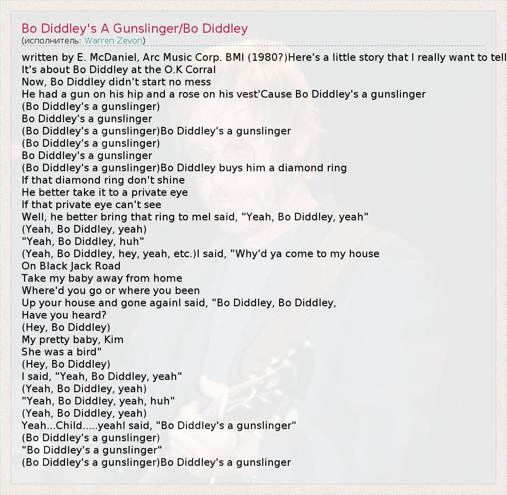 А как ты думаешь, о чем песня "Bo Diddley's A Gunslinger/Bo Diddley" ?