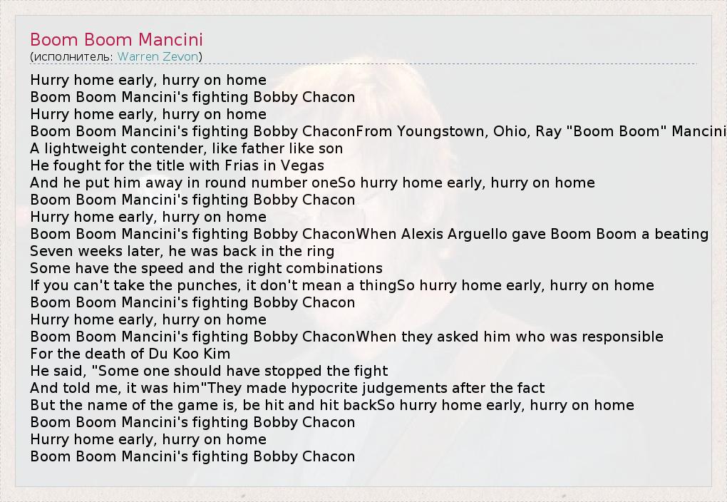 А как ты думаешь, о чем песня "Boom Boom Mancini" ?