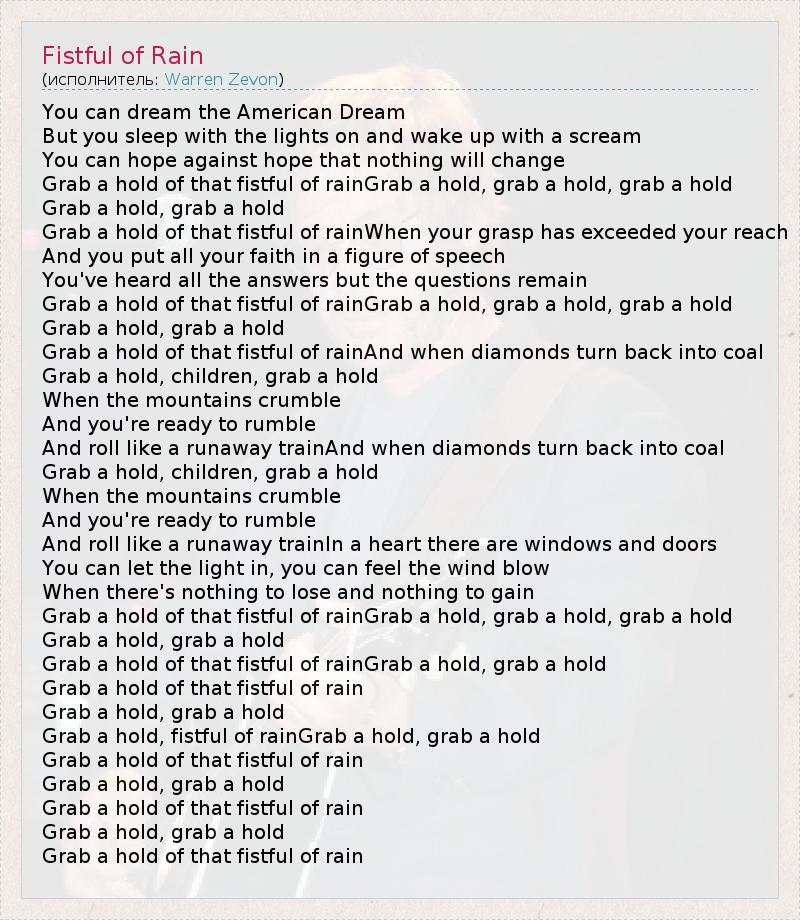 А как ты думаешь, о чем песня "Fistful of Rain" ?