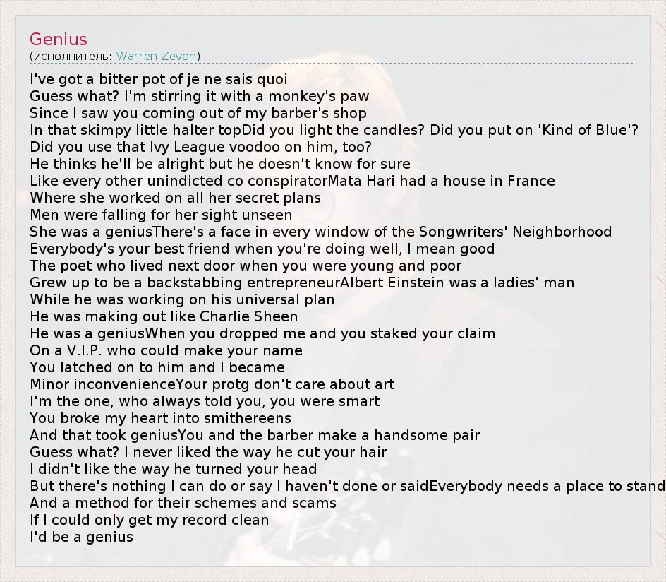 А как ты думаешь, о чем песня "Genius" ?