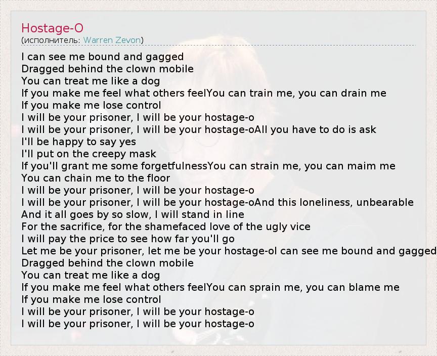 А как ты думаешь, о чем песня "Hostage-O" ?
