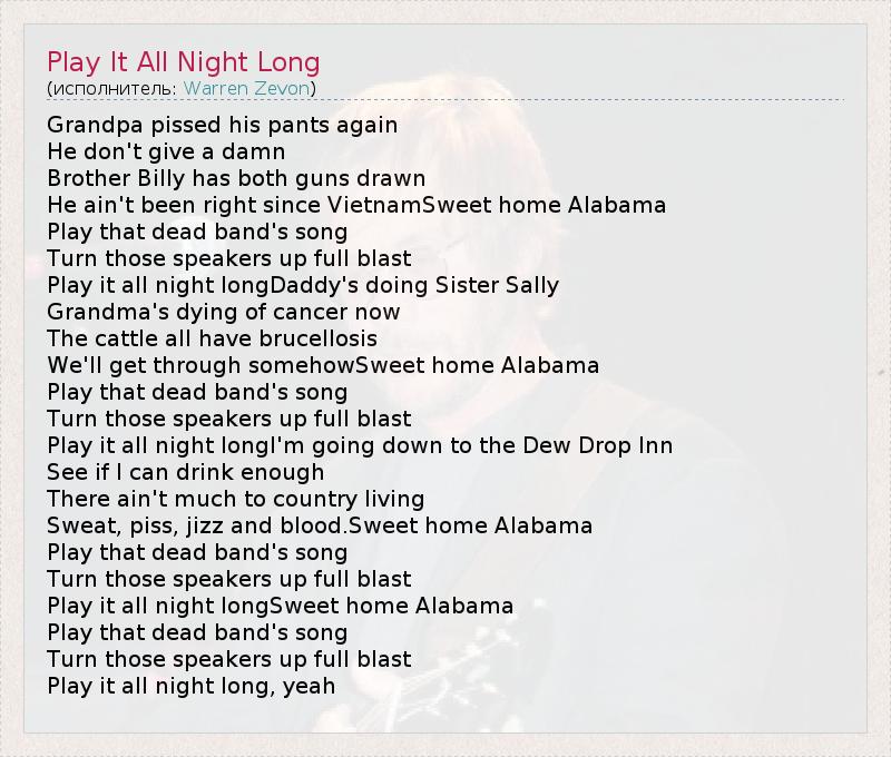 А как ты думаешь, о чем песня "Play It All Night Long" ?