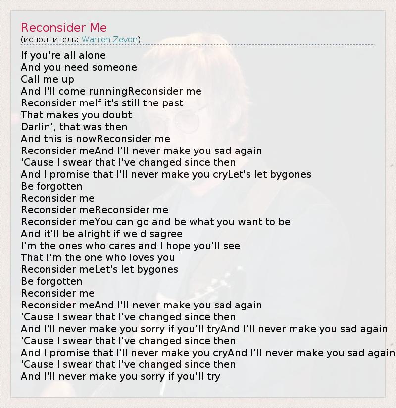 А как ты думаешь, о чем песня "Reconsider Me" ?