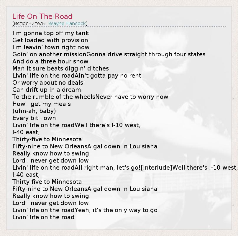 А как ты думаешь, о чем песня "Life On The Road" ?