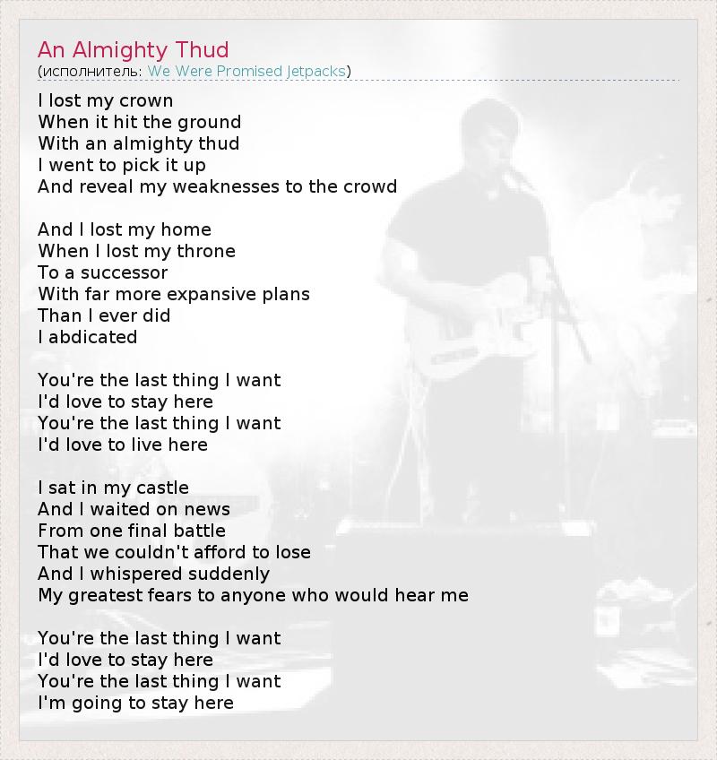 А как ты думаешь, о чем песня "An Almighty Thud" ?