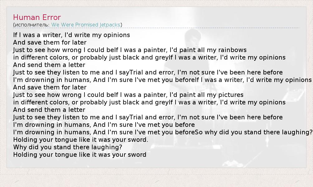 I'm drowning in humans, And I'm sure I've met you beforeIf I was a writer, I'd write my opinions