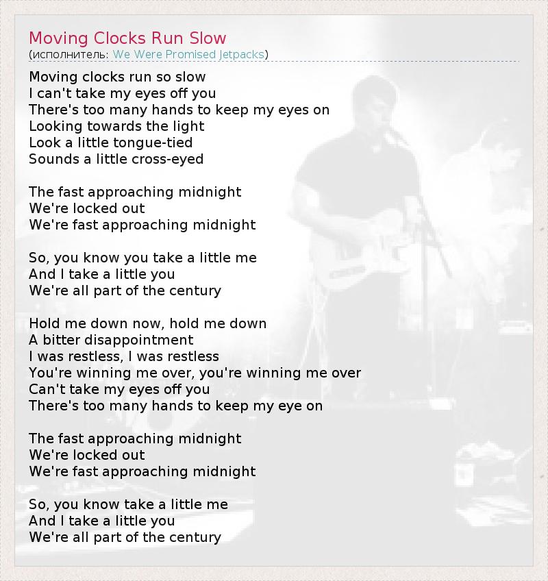 А как ты думаешь, о чем песня "Moving Clocks Run Slow" ?