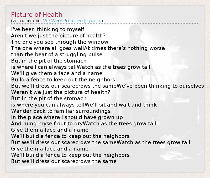 А как ты думаешь, о чем песня "Picture of Health" ?