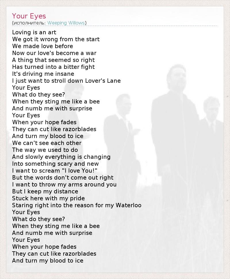 А как ты думаешь, о чем песня "Your Eyes" ?